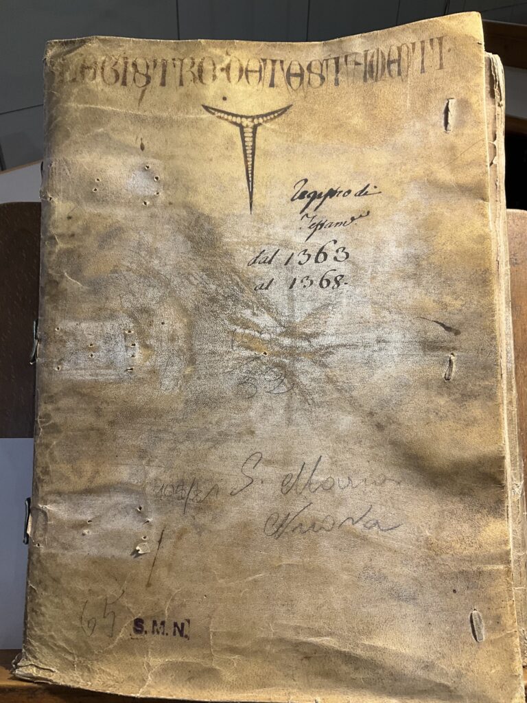One of the books of testaments preserved in the fondo of the Florentine major hospital (Ospedale di Santa Maria Nuova , Archivio di Stato di Firenze)
